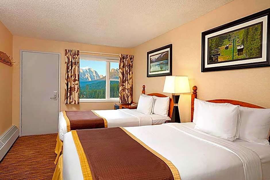 RECENTLY RENOVATED: 1 queen bed in main bedroom, 1 queen murphy bed in living room. Kitchenette equipped with flat top stove, dishwasher, full size fridge/freezer, microwave, toaster oven, toaster, kettle and coffee maker (single serve Keurig). Our kitchenettes also include plates, bowls, cups, mugs, cutlery, and utensils such as a can opener, wine opener, spatula and whisk. Stainless steel pots and pans (unfortunately we do not offer a nonstick frying pan). Dish washer tablets, dish soap and dish towels. Salt and pepper is also provided. 4 piece bathroom with bath/shower combination. Living room with electric fireplace, small dining area with table and 2 chairs. Iron & ironing board, in room safe & private ski locker. One 54″ flat screen television in living room and one 32” flat screen television in bedroom. Maximum occupancy: 4 people. Pet-friendly rooms available. Located in Building #3: 1st floor only, exterior hall access. No air conditioning.